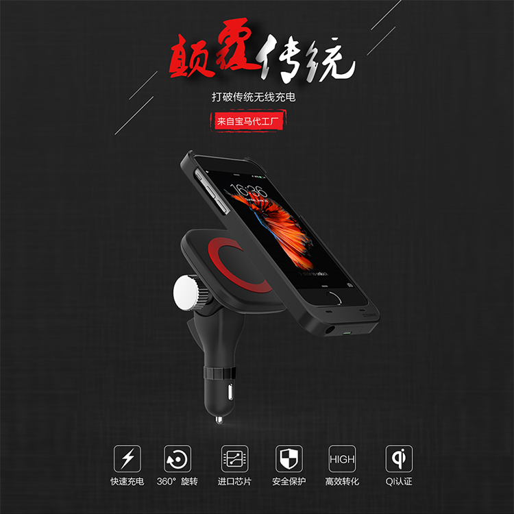 车载点烟器无线充电支架,卡槽设计,完美贴合点烟器,360度旋转,QI磁吸
