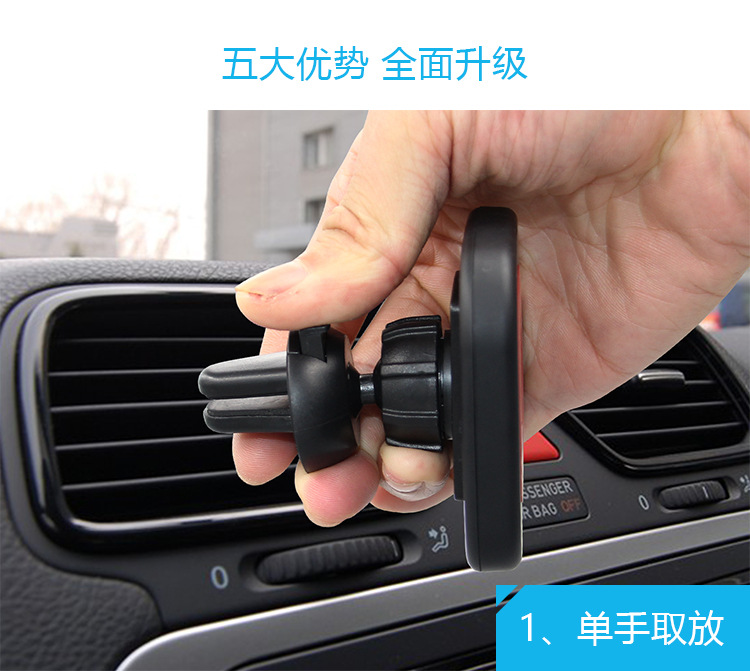 车载出风口无线充支架,解决传统支架与线充的繁琐问题,单手取放,牢固稳定,超强磁力,360角度随意,不遮挡视野,快速充电