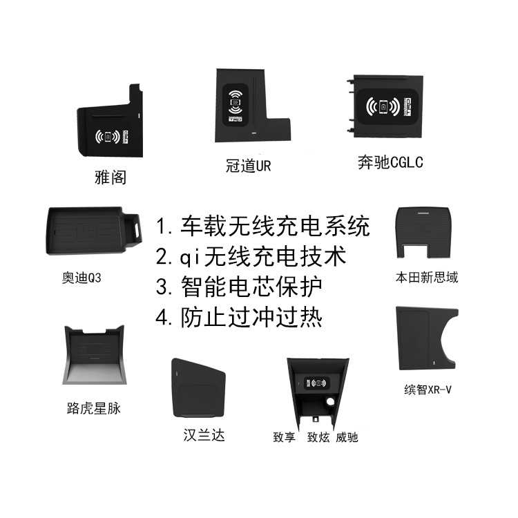 1.欠压及过压保护(车规电源输入低于9V或高于16V自动激活保护功能) 2.防脉冲保护(产品内置TVS管,防止车辆启动瞬间脉冲过大导致产品损坏) 3.正负极保护(产品接口设计有防反接保护) 4.FOD检测(无线充具有异物检测功能。保护手机不会因异物导致损坏)